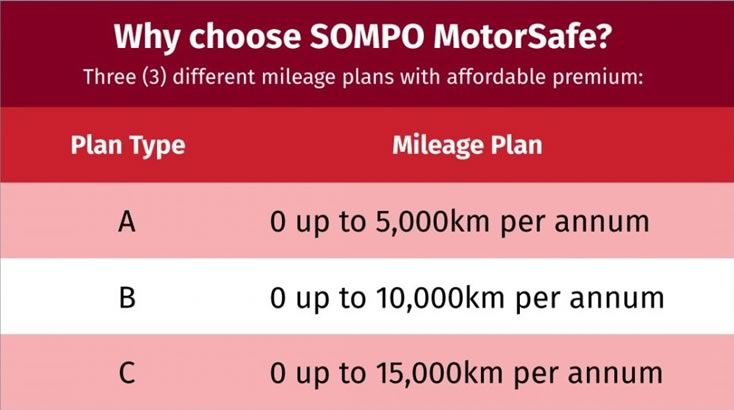 It currently offers three mileage plans to choose from. Each mileage plan aims to suit the vehicle usage at an affordable premium so the less one drives, the bigger they save. Customers also have the option to top-up to the next available plan or full-mileage plan if they are about to exceed the chosen mileage.