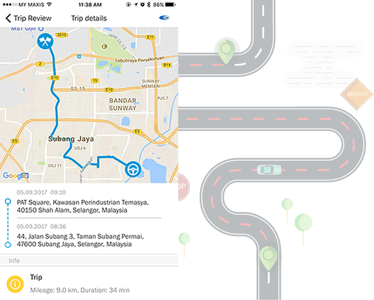 “My son wanted to drive my new car from KL to Penang for a trip. I agreed but yet worried for his safety as it is a 4 hours long drive. I use Locate Car feature to track his journey and to know that he has arrived safely.”